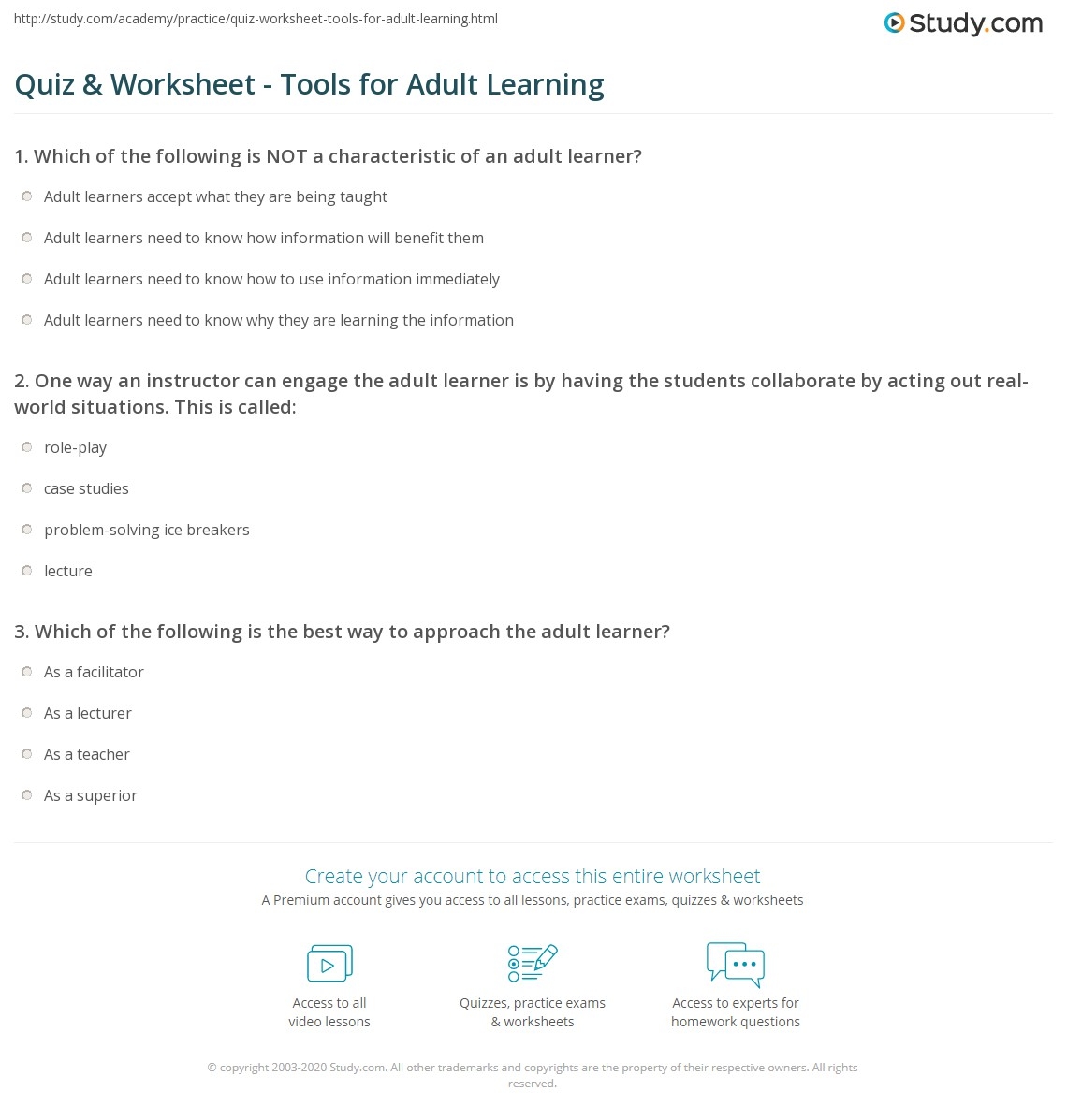 Quiz Worksheet Tools For Adult Learning Study Worksheets Library