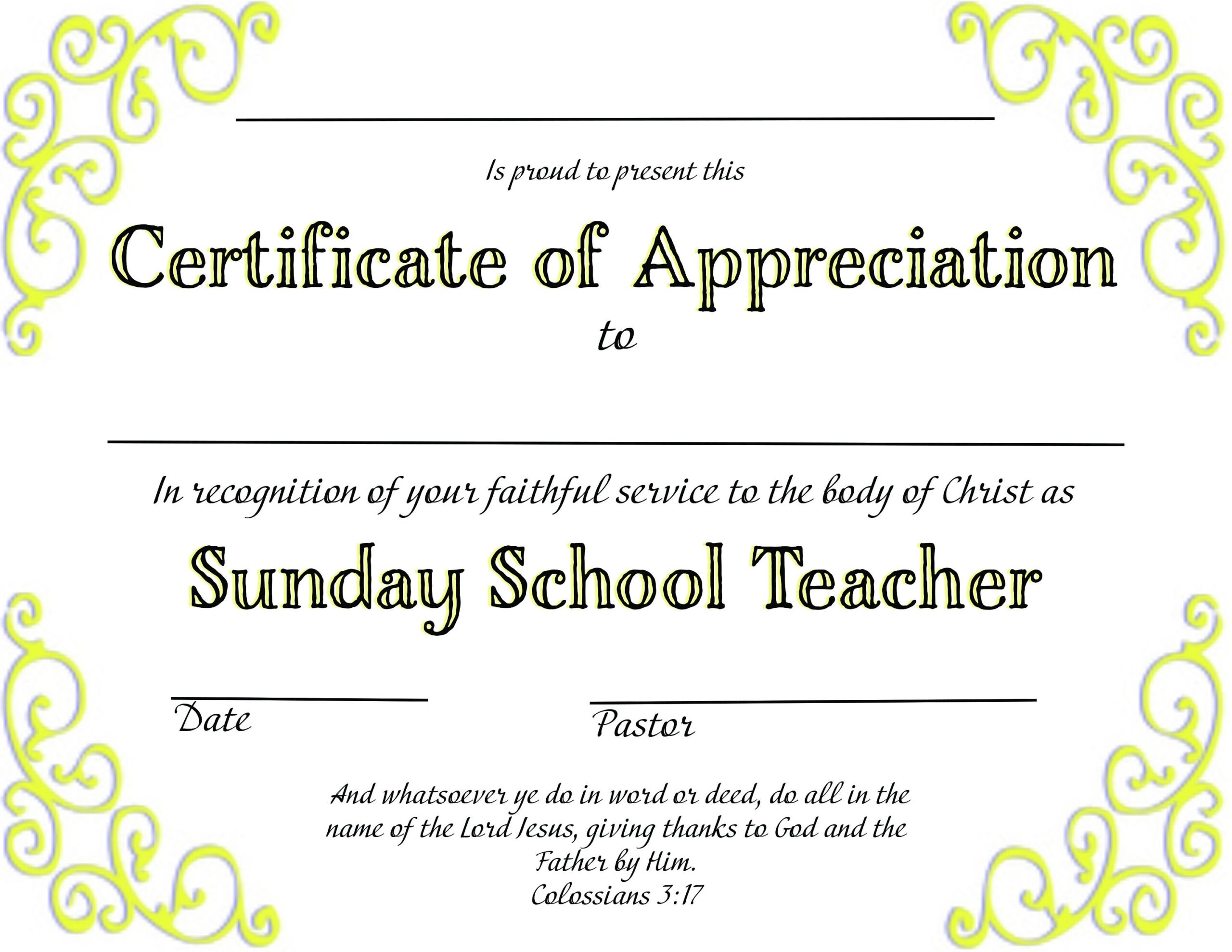 Christian Certificate Of Appreciation Sunday School Teacher Downloadable PDF Printable Customizable Etsy