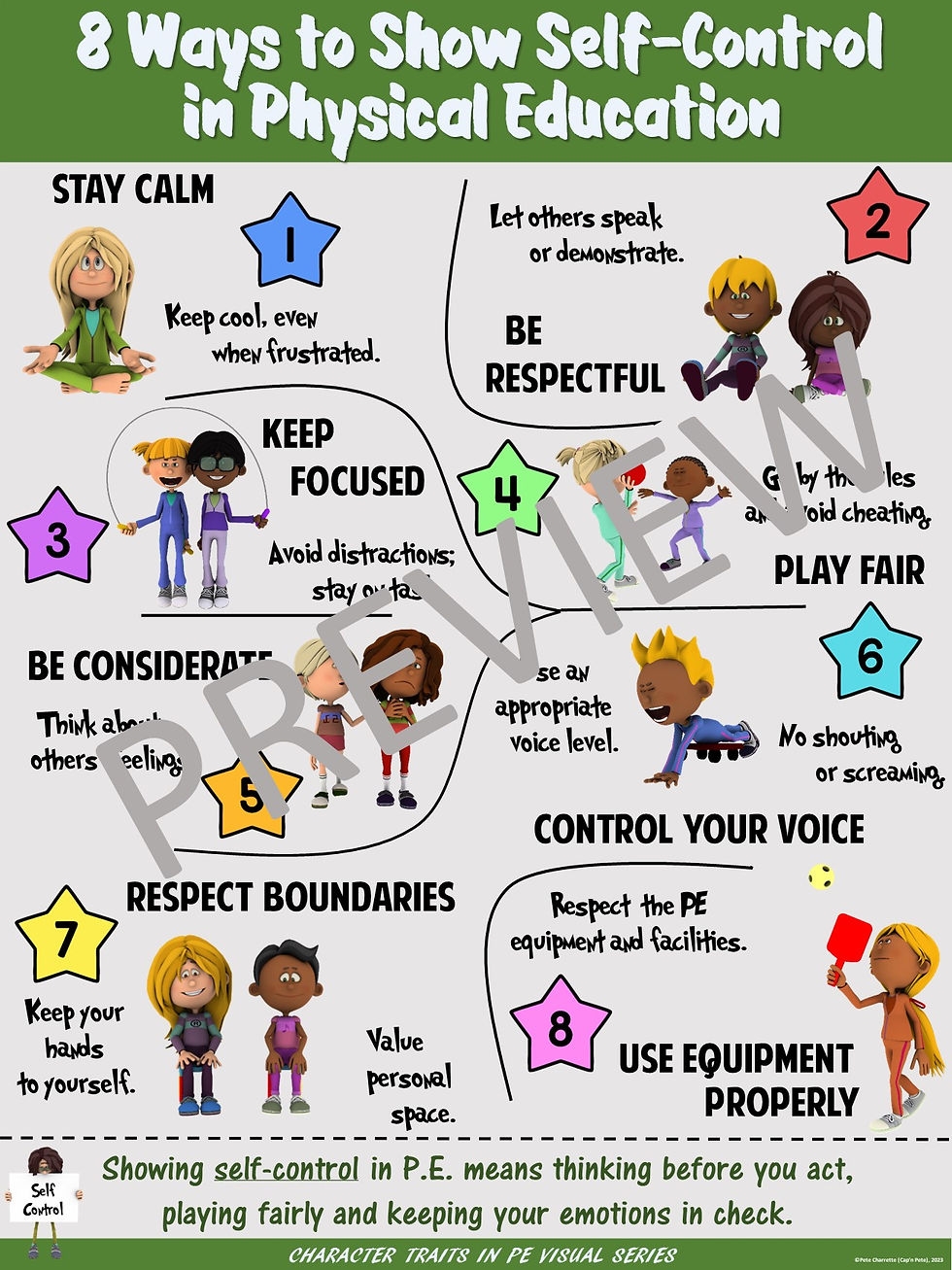 PE Poster 8 Ways To Show Self Control In Physical Education Capnpetespowerpe