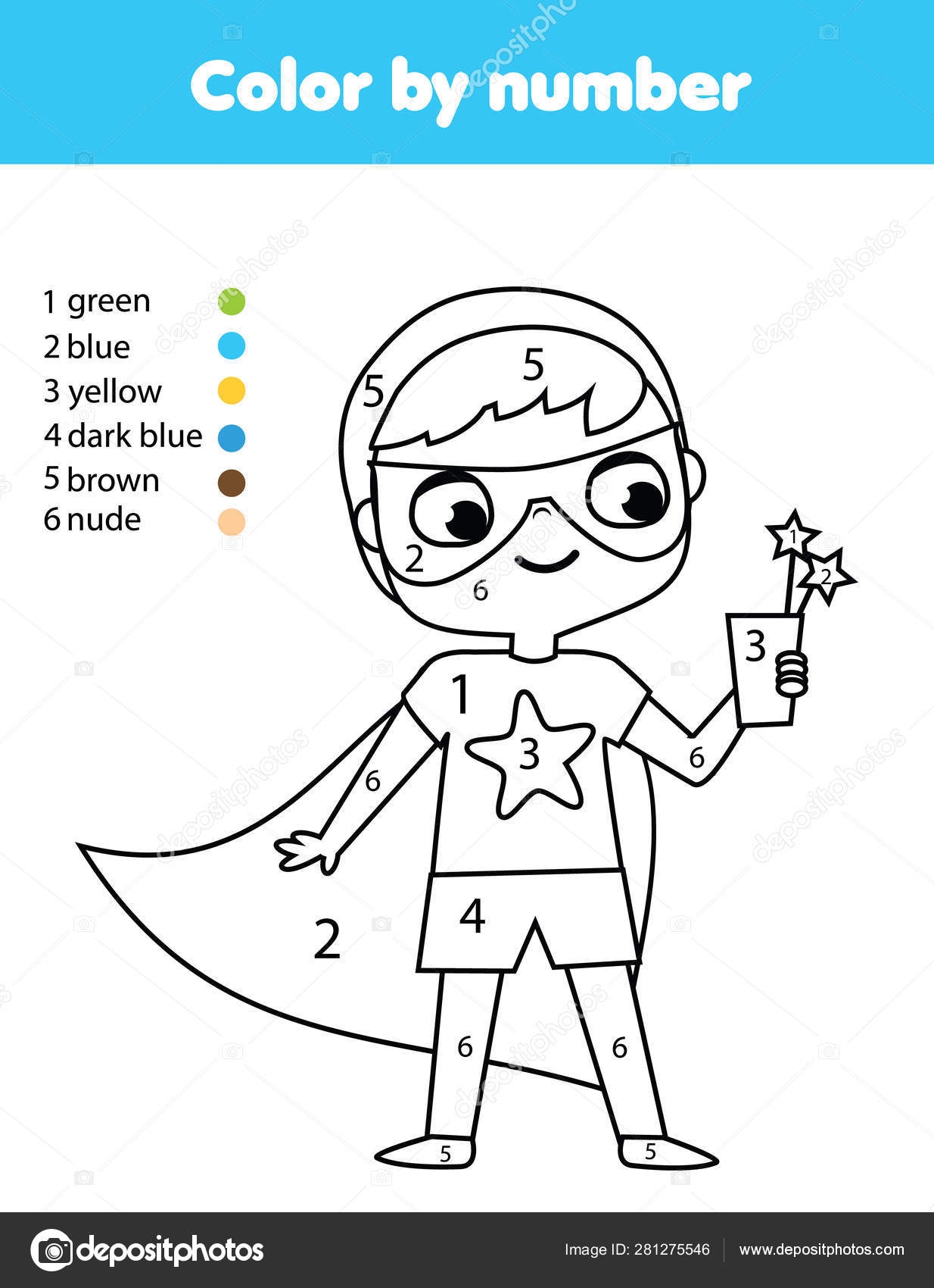 Superkid Boy In Superhero Costume Coloring Page For Kids Educational Children Game Color By Numbers Activity Stock Vector By ksuklein 281275546