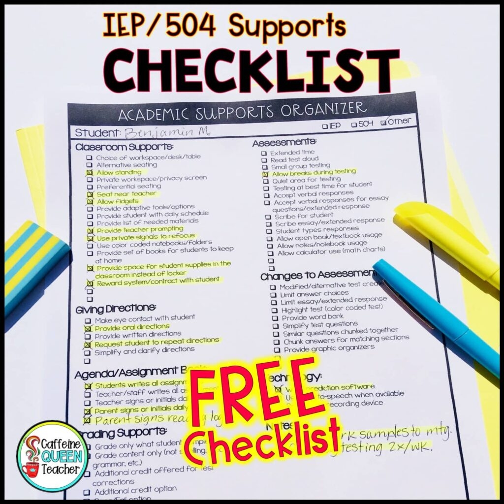 Special Education Accommodation IEP Checklist For Teachers Caffeine Queen Teacher