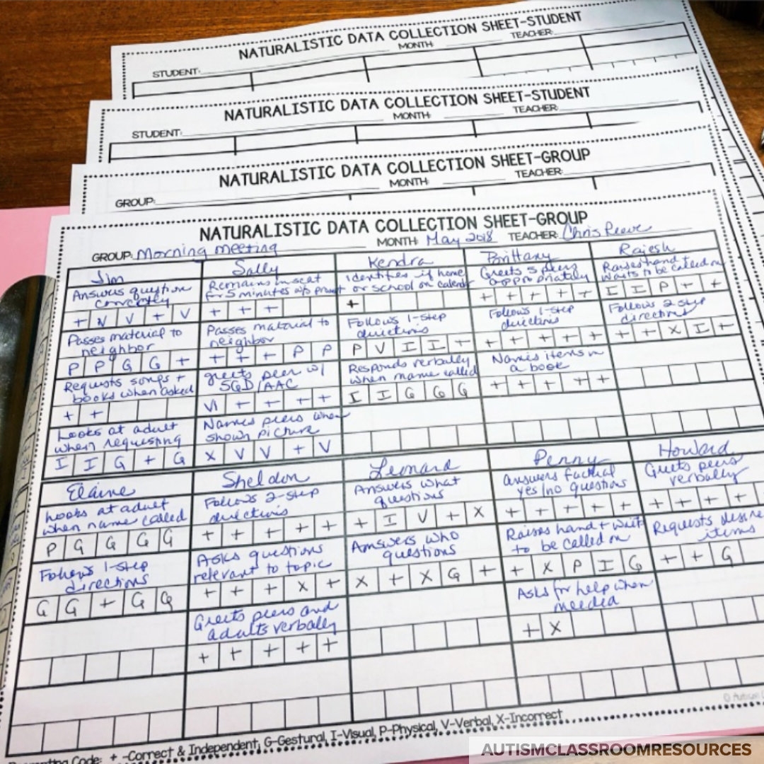 Progress Monitoring Data Autism Classroom Resources