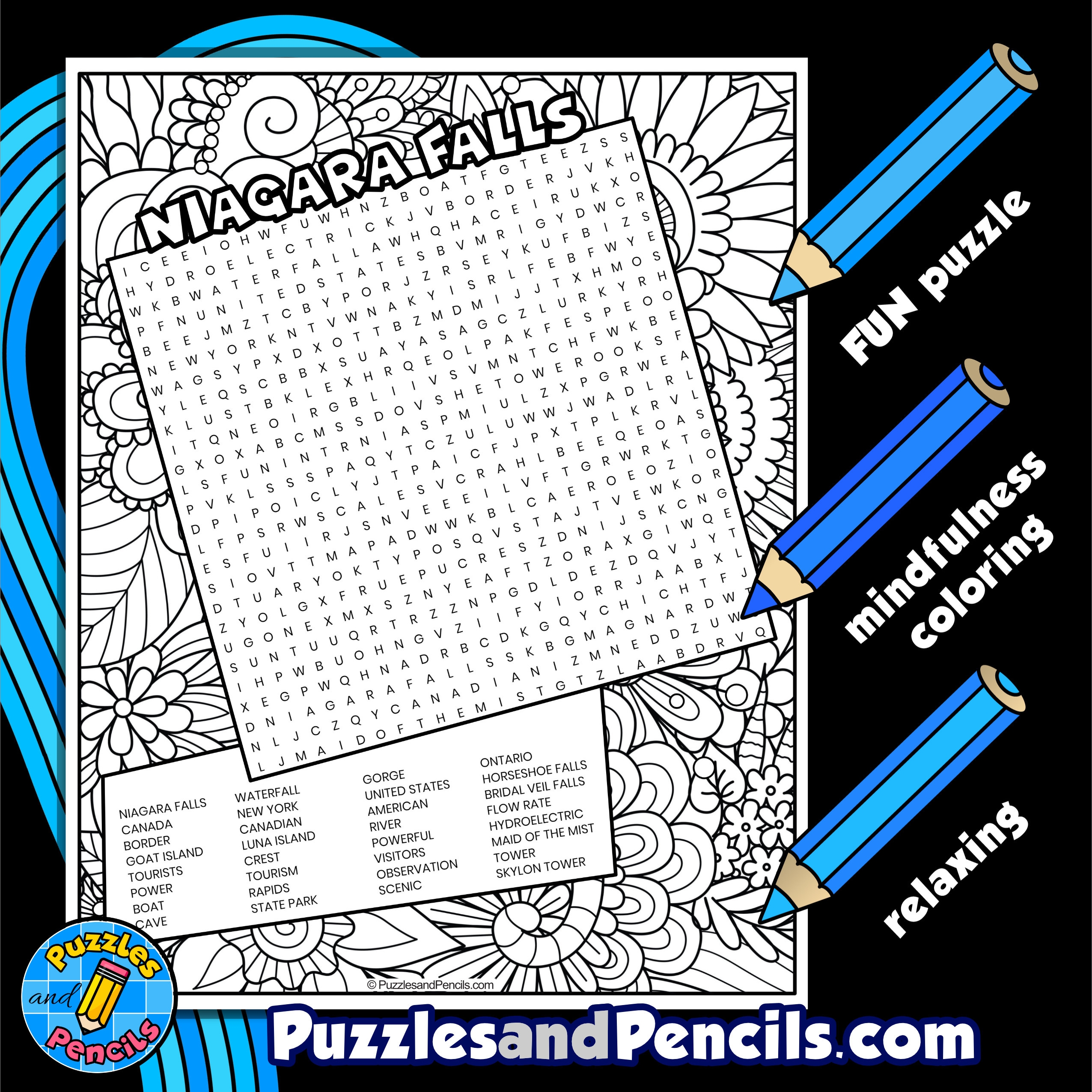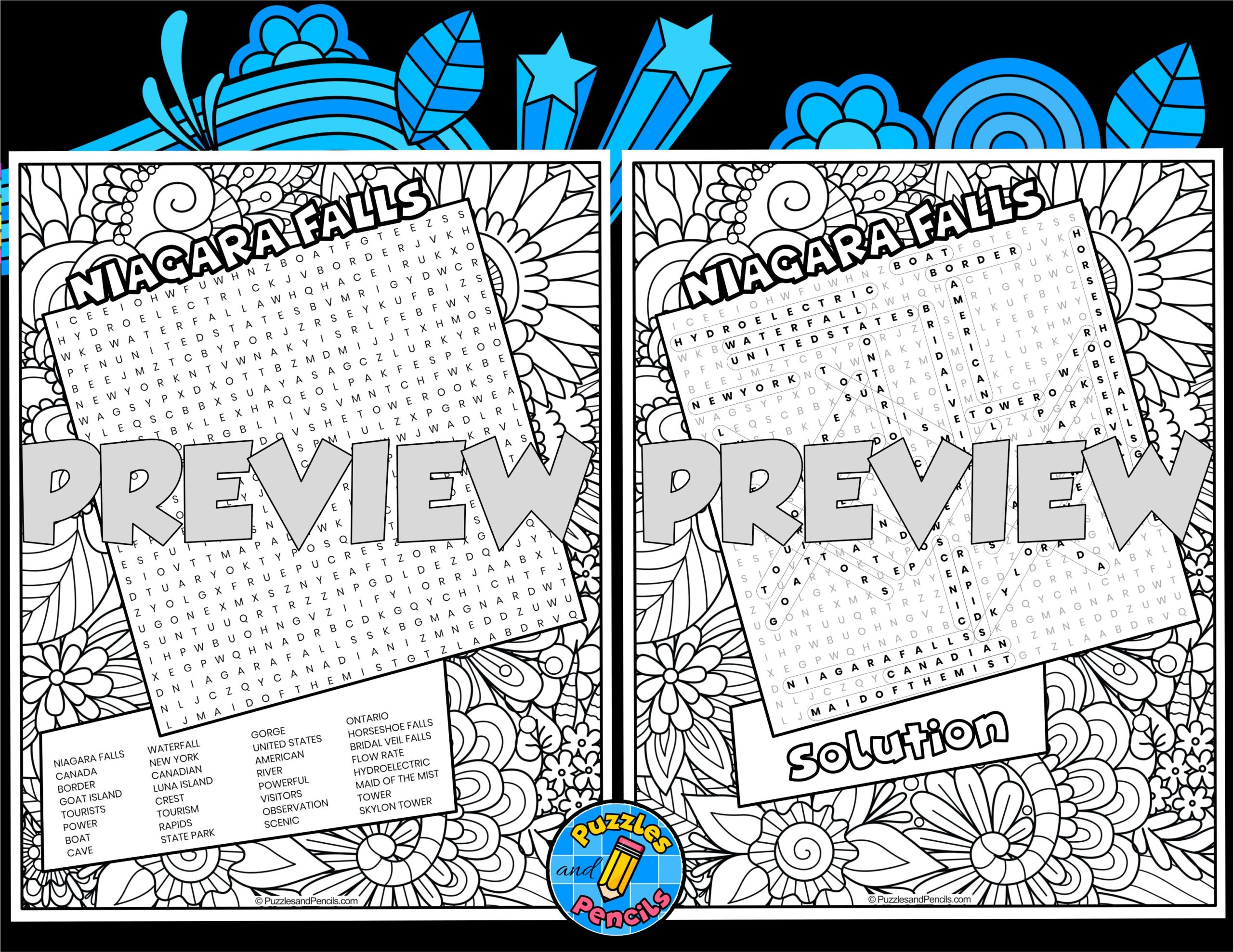 Niagara Falls Word Search Puzzle With Coloring US Tourist Attractions Wordsearch Made By Teachers