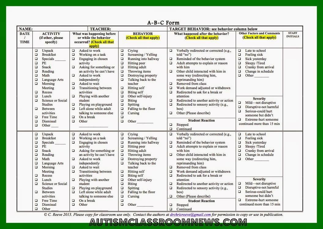 Collecting ABC Data A Freebie In Step 2 Of Meaningful Behavioral Support Autism Classroom Resources
