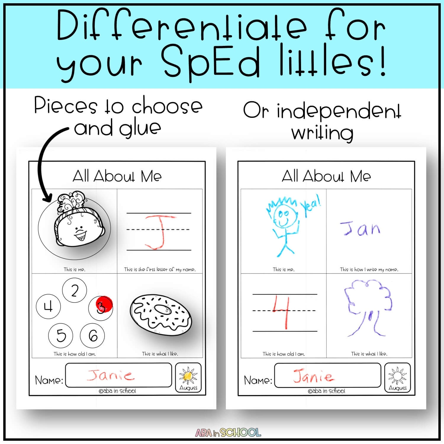 Preschool All About Me Worksheets And Quick Monthly Assessment Special Education ABA In School