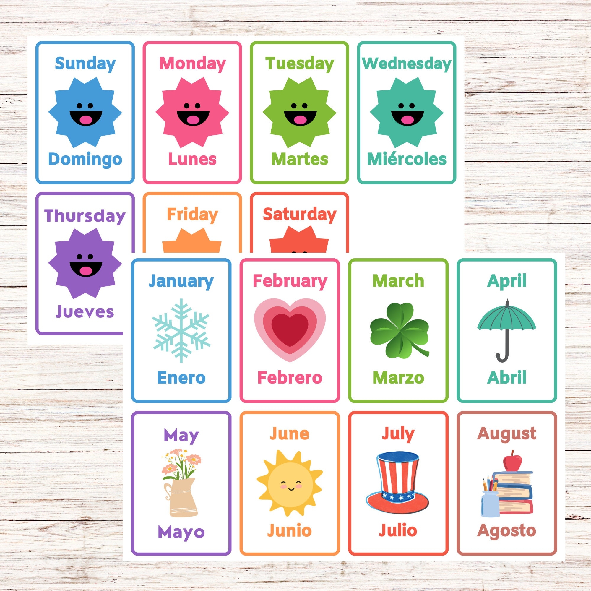 Bilingual Flashcards days Of The Week And Months Of The Year spanish And English Printable study Tools Kid s Review Educational Tool Etsy