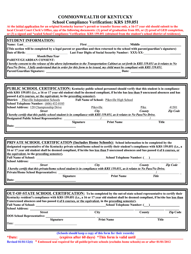 Kentucky School Compliance Verification Fill Online Printable Fillable Blank PdfFiller