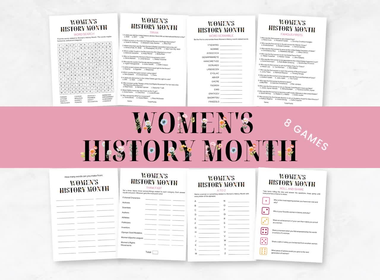 8 Printable Women s History Month Games International Women s Day Games Fun Women s Day Activities Educational Games Digital Download Etsy