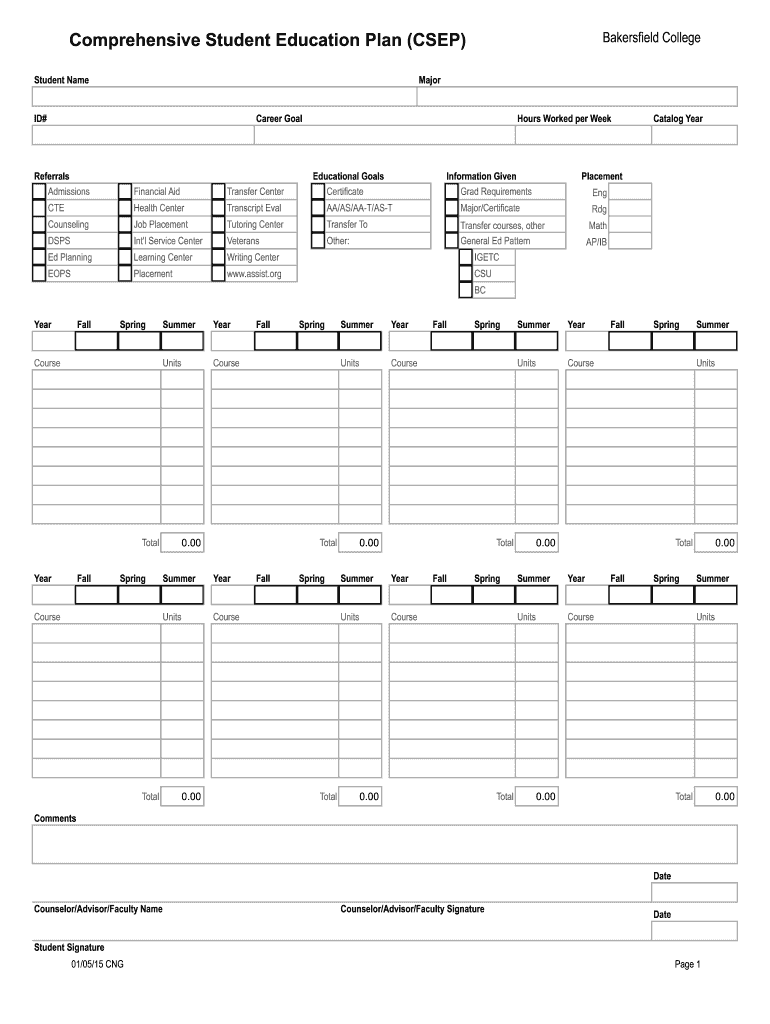 2015 Form Bakersfield College Comprehensive Student Education Plan CSEP Fill Online Printable Fillable Blank PdfFiller
