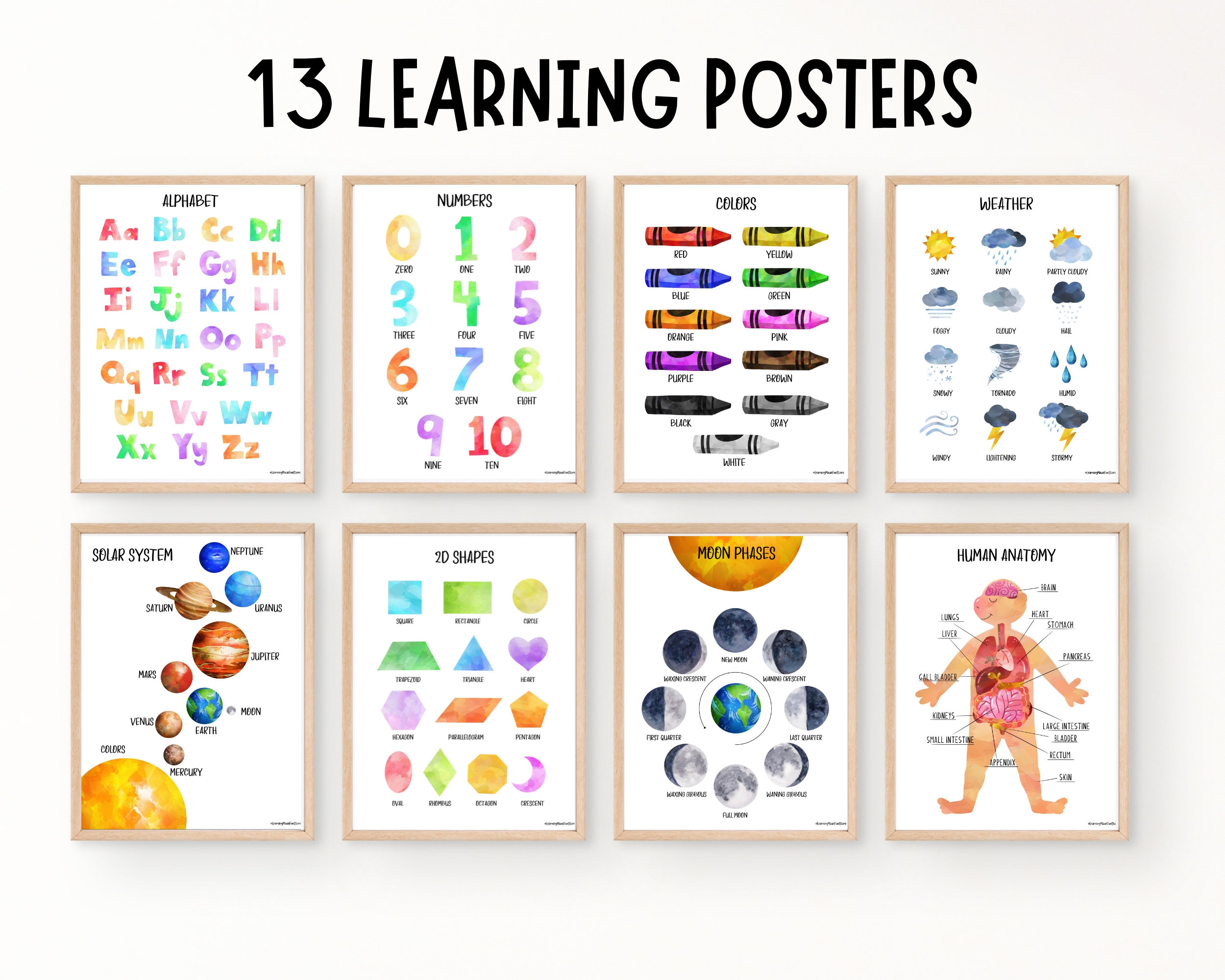 Set Of Educational Posters Classroom Posters Homeschool Printable Wall Decor Montessori Learning Posters For Toddlers Nursery Wall Art Etsy