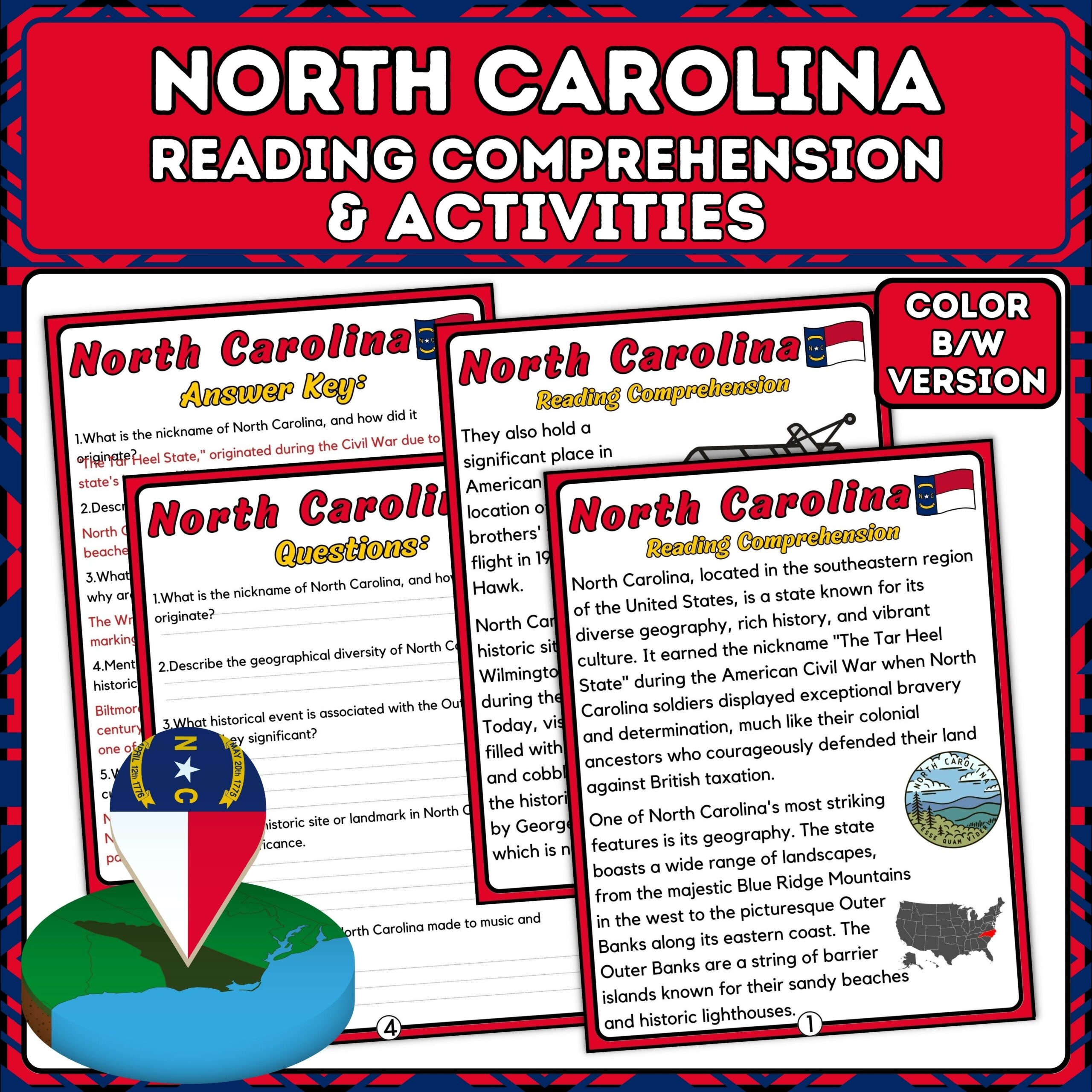 North Carolina Reading Comprehension Passages And Questions Activities Craft Made By Teachers
