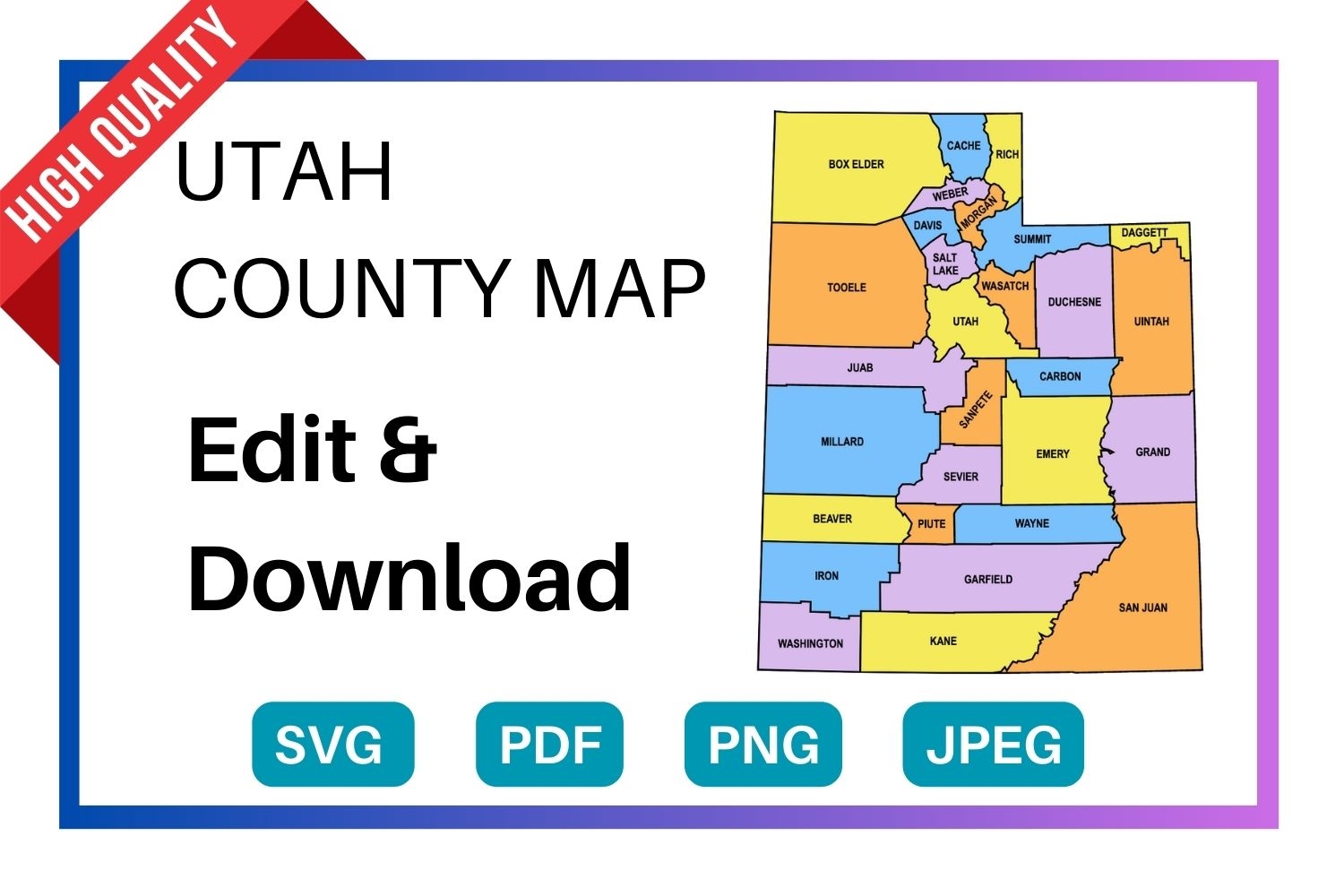 Utah County Map Editable Printable State County Maps