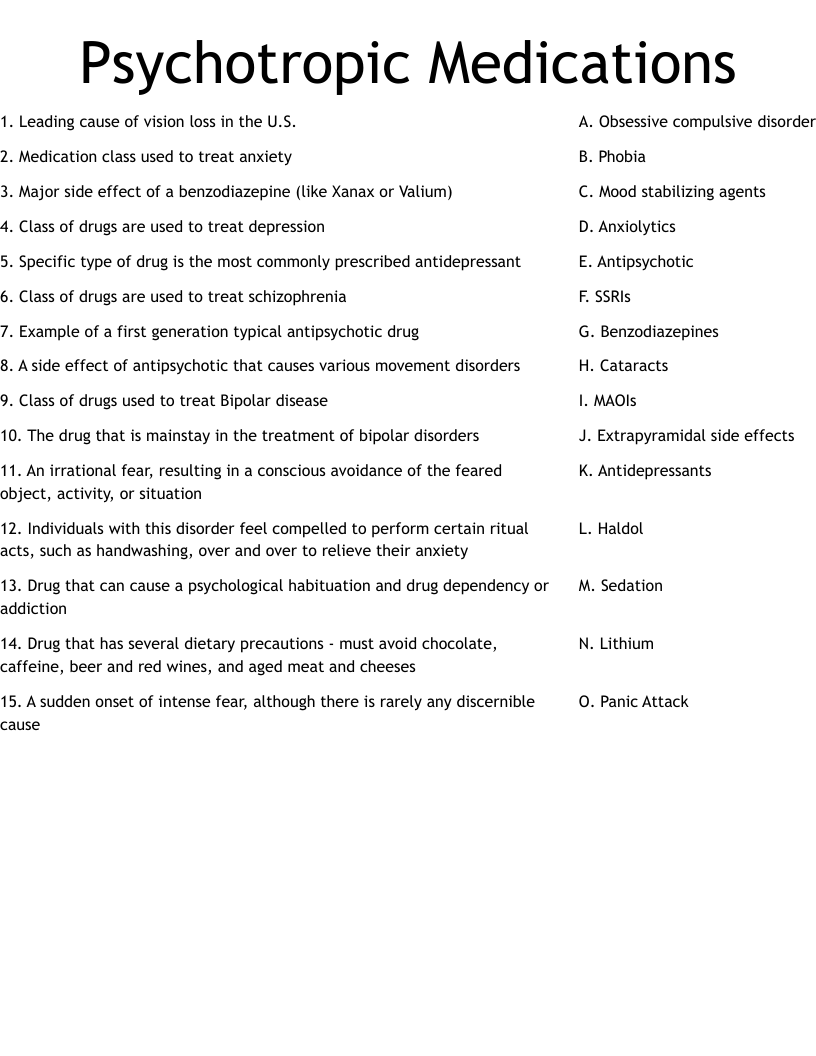 Psychotropic Medications Worksheet WordMint