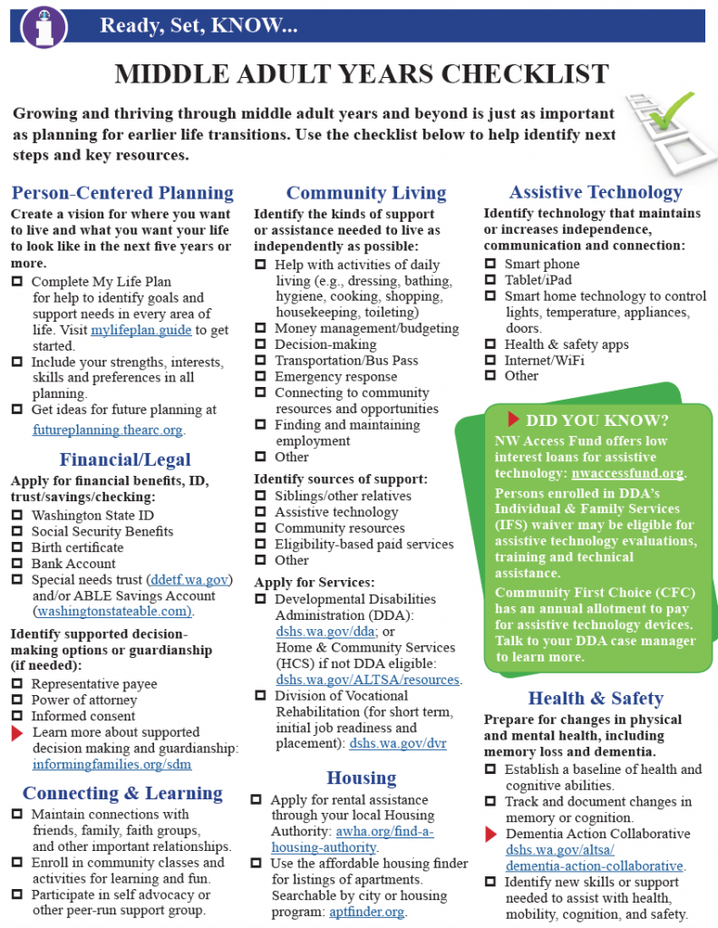 Across The Lifecourse Adult Years Checklist Informing Families